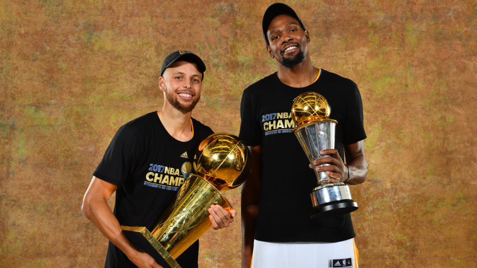 杜兰特与库里排名榜首毫无争议,两人短暂合作期间,连续三年杀入总决赛,2次赢得总冠军,除了遭遇严重伤病困扰的19年,前两年两人都是以摧枯拉朽之势拿下冠军。